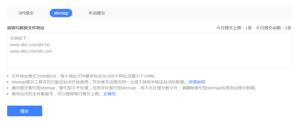 手动提交网址是把每天新增或修改的网页页面地址手动推送给百度,每次最多推送只有20条。
